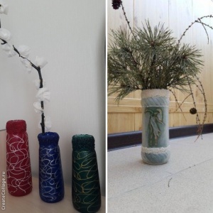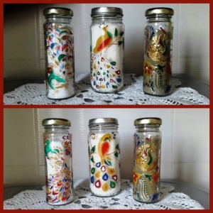 Здравствуйте! Занимаюсь, росписью банок и бутылок, витражными красками. Красила для себя, работ накопилось, а энтузиазм все не проходит:) Надо избавляться
