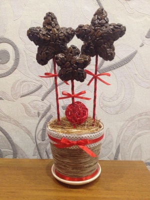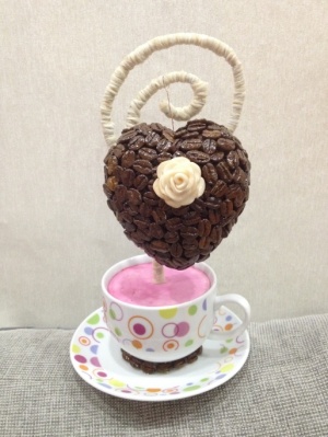 Добрый день. Парящие чашки и топиарий из кофе около 21 см в диаметре интересует?
