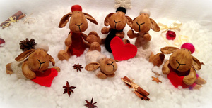 Выполнены из хлопка в смешанной технике (Тильда, сухое валяние, чердачная игрушка). Окрашены ароматным составом на основе кофе. Пахнут вкусно и уютно кофе, корицей и шоколадом. Высота - 21 см.