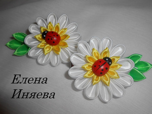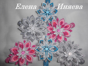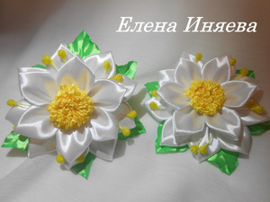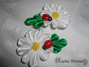 Украшения из атласных лент в технике Канзаши: резиночки, заколки и т.д