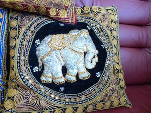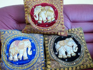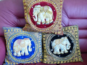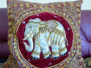 Декоративные подушки, ручная работа, бархат,вышивка, золотая тесьма, бисер, стеклярус. Все слоники разные. Все вопросы в личку.