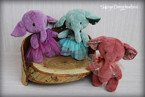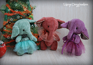 Выполнены из материала для миниатюры, пяточки и внутреннее ушко из американского хлопка, набивка синтепух, утяжелены металлическим гранулятом, глазки стекло, 6 шплинтов на каждую слоню. Легкая тонировка художественным маслом и текстильным маркером.