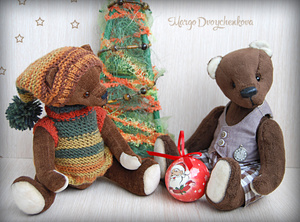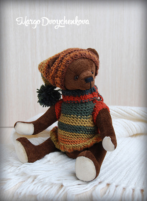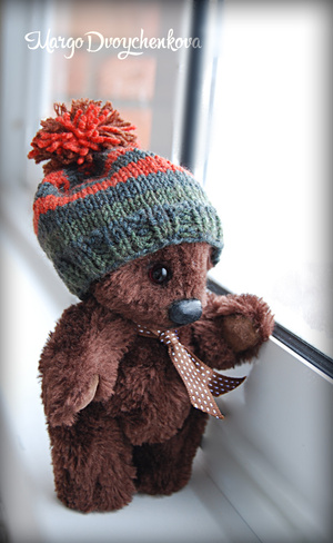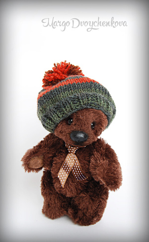 Мишка выполнен из искусственного меха, ладошки,пяточки и внутреннее ушко из миништофа, набивка синтепух, утяжелён металлическим гранулятом, 6 шпинтов, глазки стекло, носик из пластики, тонировка художественным маслом, пастелью и текстильным маркером. Одет мишаня во "взрослый" галсткук и вязанную шапочку с помпоном.