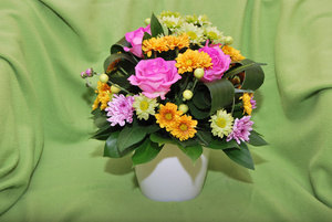 Вам от нас с теддиками букетик: цветочную композицию, кстати, тоже я делала... Ну какая же я талантливая...)))))))