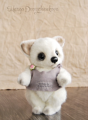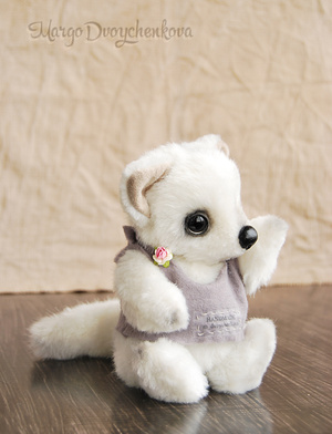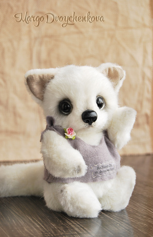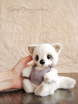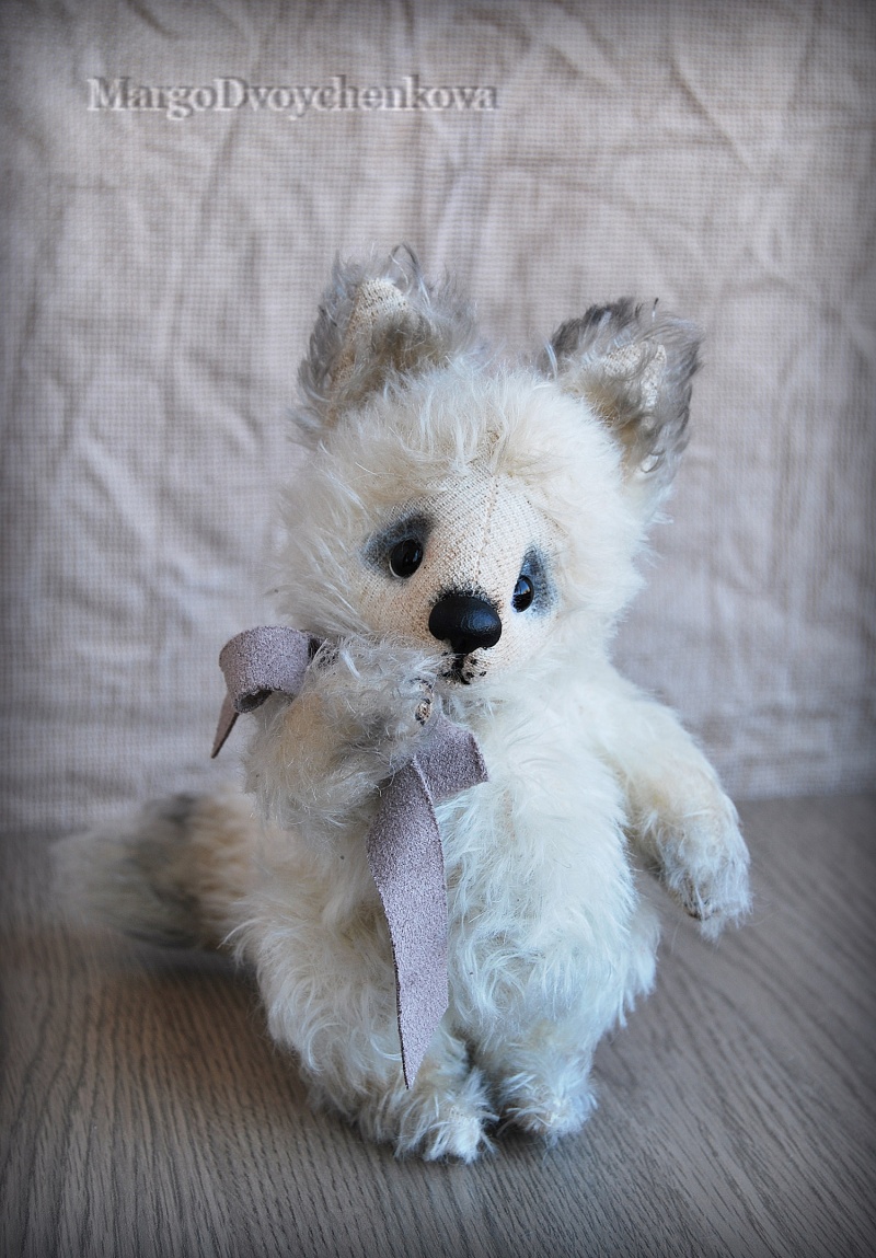 Белый, мягкий, в меру пушистый полярный лисёнок Вуки выполнен полностью вручную по авторской выкройке из немецкого искусственного меха Schulte, искусственной замши, набивка синтепух, утяжелён металлическим гранулятом, 6 шплинтов, глазки стекло, носик ручной лепки, хвостик армирован, тонировка сухой пастелью и маркерами.
