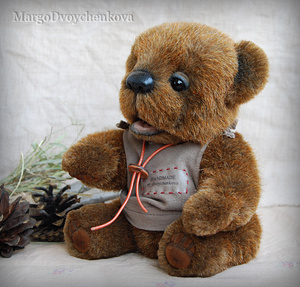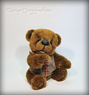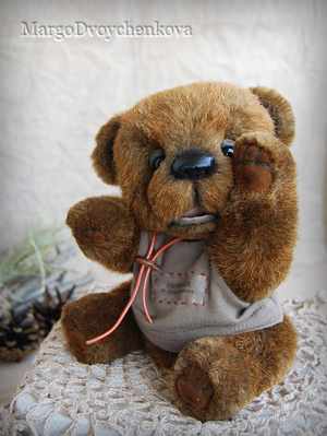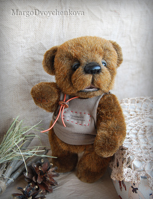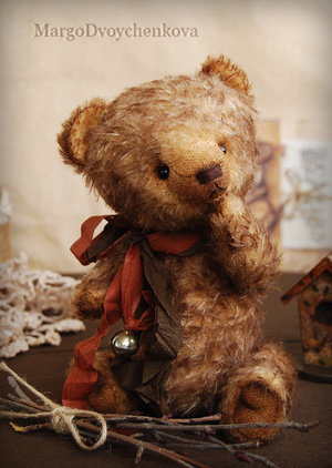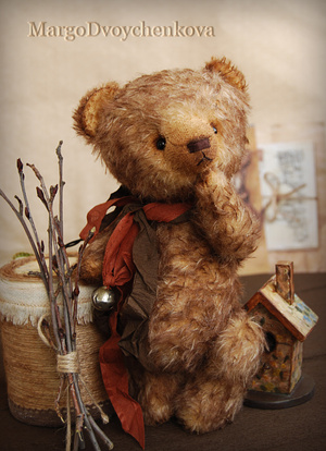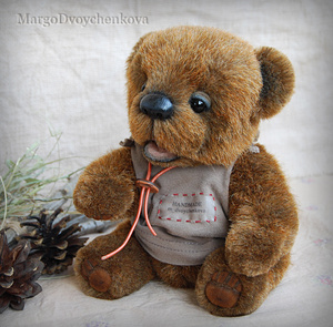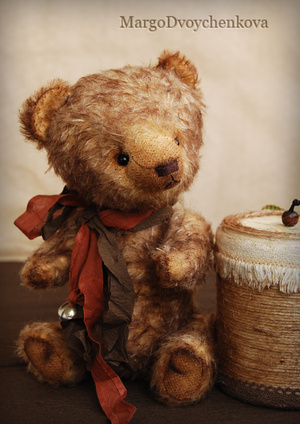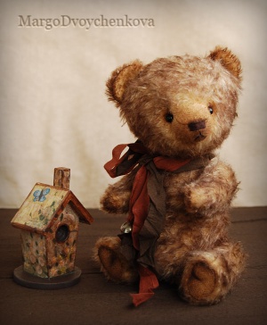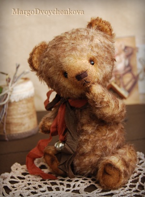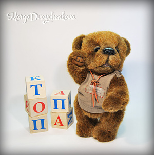 Мишка Авдей выполнен из немецкой альпаки, пяточки из миништофа, набивка синтепух, утяжелён металлическим гранулятом, глазки стекло, 6 шплинтов, носик ручной лепки, тонировка художественным маслом и маркерами.