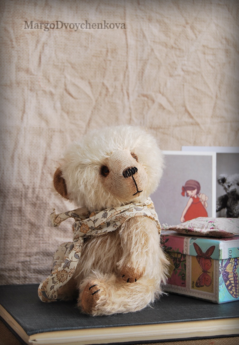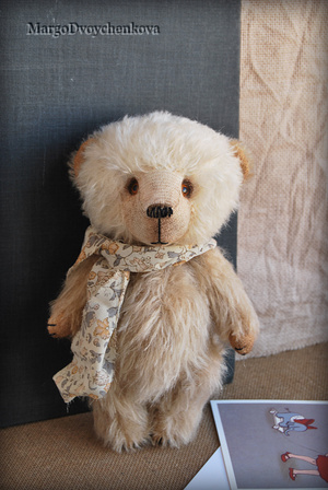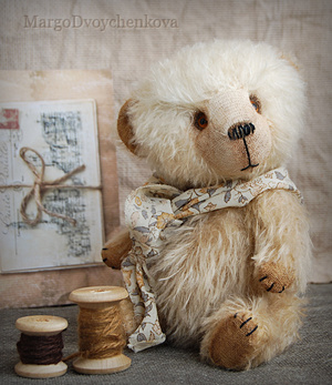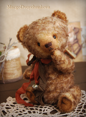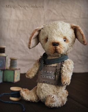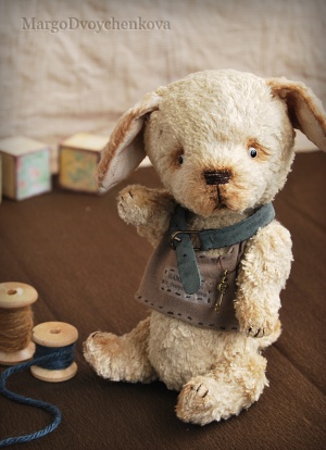 Выполнен из немецкого мохера, миништофа, набивка синтепух, утяжелён металлическим гранулятом, глазки стекло, 6 шплинтов, тонировка текстильными маркерами и пастелью.
