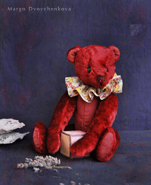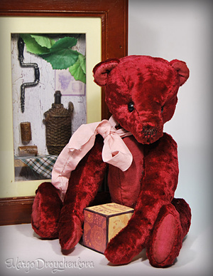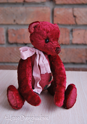 Мишка выполнена полностью вручную из немецкой вискозы, набивка синтепух, утяжелена минеральным гранулятом, 6 шплинтов, глазки стекло, тонировка художественным маслом. Рост 28 см. Стоит самостоятельно.