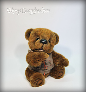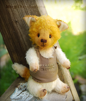 Выполнен полностью вручную по авторской выкройке из немецкого мохера, набивка синтепух, утяжелён минеральным гранулятом, 6 шплинтов, глазки стекло, носик вылеплен вручную, тонировка художественным маслом и маркерами.