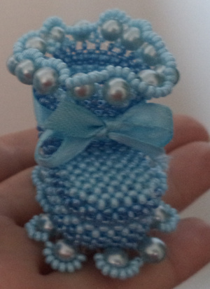 Если ещё актуально - пинетки сувенирные бисерные 4х4 см розовые и голубые