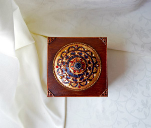 Ларчик выполнен на основе из дерева, Контурная роспись, красивая оригинальная фурнитура, медальон на крышке полностью выполнен вручную, качественное исполнение - всё это несомненно станет идеальным дополнением любого интерьера! Внутри обивка бархатом цвета индиго