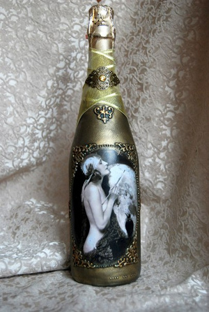 Осталось совсем немного времени до Нового года, хочу представить несколько своих вариантов по декору шампанского. Такая бутылочка всегда эффектно будет смотреться на праздничном столе, а так же послужит прекрасным подарком для любимых, друзей и коллег!