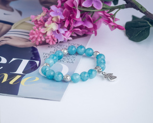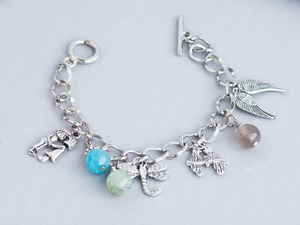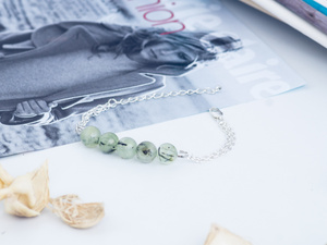 Еще браслетики с подвесками, розовым кварцем, агатом, пренитом и голубым кварцем.