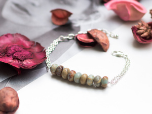 Изящные браслеты бусинами агата, варисцита, голубого кварца и граната. Длина у всех регулируется