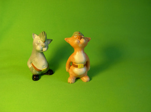 Первые изделия выполненные на заказ. Родители заказчика появились на свет в Год Кота, папа увлекается рыбалкой, мама - шитьем.