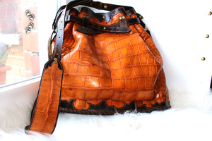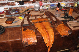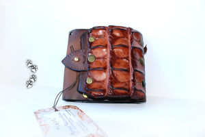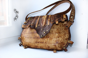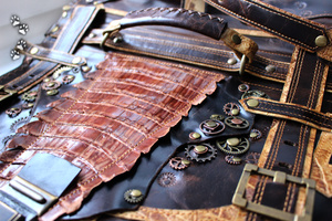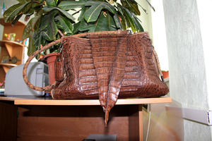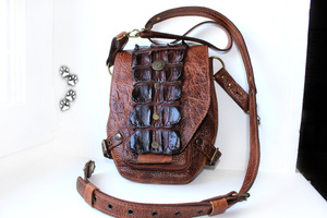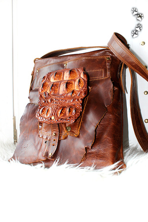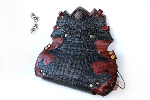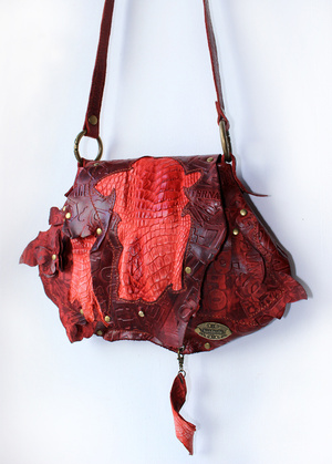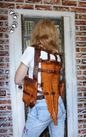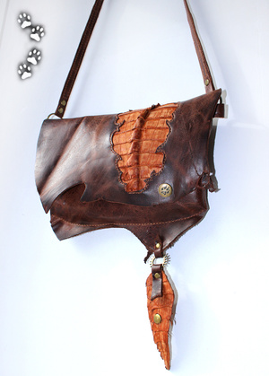 У каждого находится "свой" материал, а я остановилась на коже с того момента, как мне в руки попалась маленькая, неказистая шкурка крокодильчика.. Потом были и трёхметровые брутальные хребты, и чудесной красоты рисунок чешуек; всё это нужно было правильно подчеркнуть "обычной" фактурой.. Так и захватило на последние шесть лет:)
