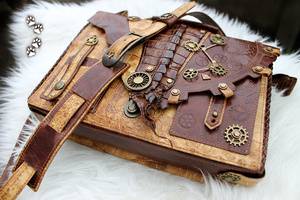 Портфели стимпанк и с орлом - 25, торба $450, с пирографией $250; в $ это когда в сша уехало..