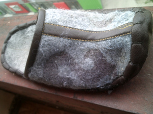 Привет, сограждане. Вопрос касается материала для изготовления тапок. Эти тапки из другого города. Проходил в них один год. Проблема, имеющаяся в данное время, заключается в повреждении подошвы у них и её окантовки. Сделаны они просто: подошва из грубой ткани закреплена к краям кожезаменителем и прошита толстой нитью. Предполагаю, что могла бы существовать технология, которая позволила бы специалисту сделать для них более прочную подошву в замен существующей. Основной материал, это войлок, и они хорошо выдерживают стирку, поэтому общее состояние довольно приемлемое.