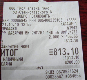 Вчера 21 октября я встретила Лену, вручила ей ноутбук, купленные на оставшиеся деньги актуальное лекарство (см. чек ниже), а также пару книжек, наклеек, нужных Надюшке, 1 кг винограда киш-миш и много пирожных :p. Потому что Надя просила привезти "городских пирожных" :-) Ну мы в Скоморохах и купили.