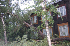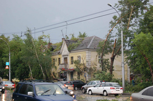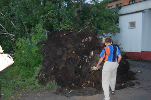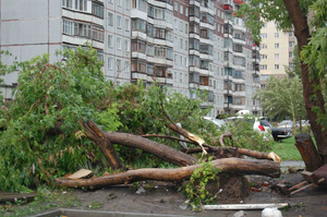 У нас тут тоже на улице Аэропорт тополь вырвало с корнем и повалило прямо на наш дом, вот ждем спасателей, а то дома-то старенькие, так может и стену и крышу проломить...