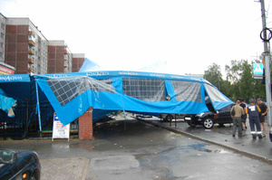 У нас в центре срывало уличные фонари со столбов, деревья тоже пдпли на машины...