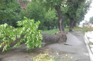 На Первомайке на прошлой неделе после урагана вырвало с корнем несколько тополей.