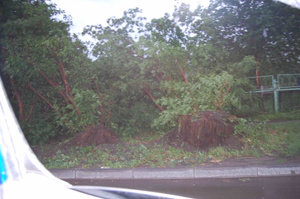 Ага, была именно в это время там! Зрелище не для слабонервных! Если бы вы заглянули чуть поглубже во дворы, вы бы увидели ещу кучу покалеченных машин, выдраный и перевернутый гараж, кусок крыши с УПК, побивший стекла в доме напротив....