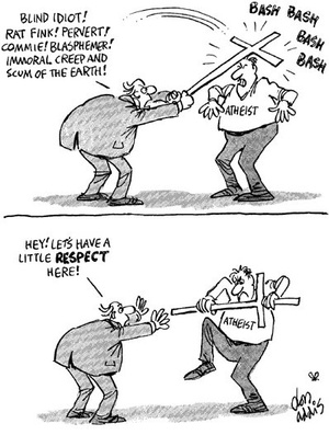 Оскорблять всех небашляющих в кассу ЗАО РПЦ "безбожниками" и "атеистами" - подобно некоторым защитничкам - это, безусловно, высокоморально и нрасвтвено.А, что оскорбительного или уничижительного в слове "Атеист"? Кроме того разве я кого-либо называл безбожником? Кстати что в этом слове оскорбительного или уничижительного?
