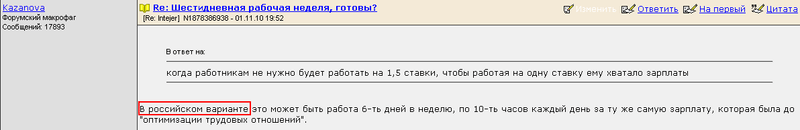 В принципе какая разница работодателю работают у него три работника по одной ставке или два по полторы ставки? Просто есть на форуме люди, которых хлебом не корми - дай только возможность обгадить нашу действительность, и получить от этого удовольствие. Очередной шаг к геноциду трудоспособного населения со стороны наших правителей.Ну, Вы прям как Ленин на броневике