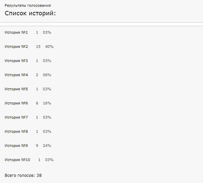 Голосовать могут все зарегистрированные пользователи. Для этого нужно указать номер истории, которая Вас больше всего удивила, поразила или порадовала