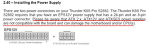 нашел блок питания с разъемом 20+4 pin воткнул - кулеры на процессорах начинают крутиться. монитор ничего не показывает. вроде подходит. нужен правильный переходник с двух молексов на второй разъем питания 8pin