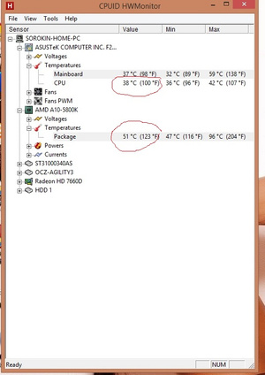 При включении сразу 70-80 град, в простое около 50, при запуске игры кризис 3 через 10 минут комп отрубается, иногда отрубается при просмотре фильмов.