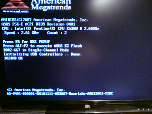 Пытаюсь установить операционную систему. Материнская плата запускается, слышен один короткий звуковой сигнал (успешный запуск), после этого на экране монитора вижу вот такое изображение - и все.