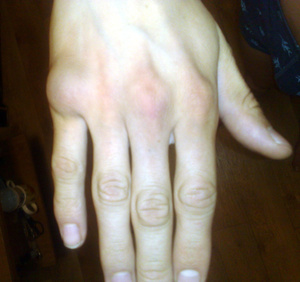 Т.е. мизинец сгибается и разгибается (вернее в прошедшем времени) пока не появилась шишка.