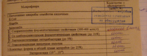 Были сальмонелла с нормальными ферментативными свойствами менее 1м/г? и клебсиеллы пневмонии 10в-6 - 115 м/г это всё было подчёркнуто красным, лечили бактериофагом пневмонии клебсиелы, потом сорбент и линекс, а сейчас клеб нет, зато появились е коли, в каком количестве к сожалению не знаю, не дали мне результат ни посмотреть, ни сфотать, но будем пересдавать, причину выше написала.