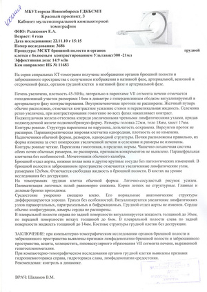 1. УЗИ ходили делали во вторник -10.11 ( минут 5 ходьбы от нас находится центр НГМА ) печень увеличена 10смЮ но у нее была раньше в сентябре печень увеличена до 15см и так живот не был вздут.