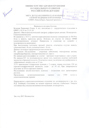 ТМГ сделали 22.11.10, На следующий день, 23.11.10 ребенка перевели в гематологию. Вы считаете, что всё делалось очень медленно? Иногда, чтобы разобраться и поставить диагноз, нужно время, чтобы сравнить анализы в динамике.