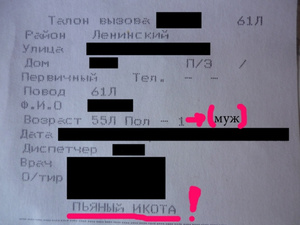 Вот и удивляюсь я Вашим выездам к икающим алкоголикам: то ли что-то изменилось за то время, как тетя не вызывает Скорую, то ли это особое отношение к особым категориям граждан.