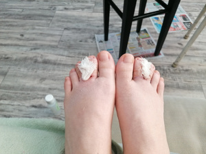 Возможно мне повезло что из-за пальцев на руках я до 15 лет наслушалась "мутантка", "инопланетянка", "чудовище", "а это не заразно?" и после этого неэстетичность пальцев на ногах вообще не парит. Особенно когда нет таких физиологических проблем как на руках, когда летом появлялась микроскопическая трещина на перепонке, туда попадал пот и хотелось плакать и выть потому что аж волосы на голове шевелились от того как зудело и пекло.