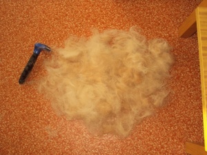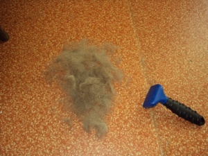 Вот что мы успели начесать с нее за 5 минут, которые она полежала смирно. Прям до истерики вырывалась и орала, как резаная, пришлось отпустить ребенка. Ничего не любит, помыться - вопли, когти подстричь - вопли, почесаться - тоже вопли