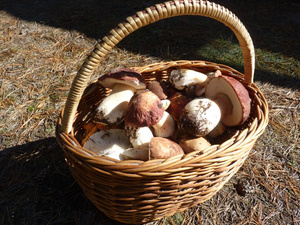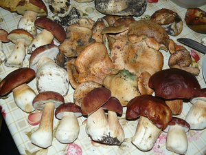 Из грибов за 4 часа прогулок: белых - 16, рыжиков - 14, груздей - 7, моховиков-опенков - ведерко 5л.