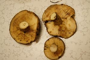 3 черных груздя?Да. Кстати, недавно узнал, что черный груздь (Lactarius turpis) признали довольно опасным для употребления в пищу: "Согласно последним исследованиям, L. turpis больше не относится к съедобным грибам. Данный вид содержит несколько биологически активных компонентов, один из которых, некаторин (necatorin) - мощный мутаген-канцероген; его концентрация составляет до 20 мг на 1 кг свежих грибов. Кипячение разрушает около половины некаторина, оставляя примерно 25% от первоначальной концентрации в грибах и 25% - в воде". (Ссылка)