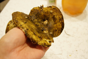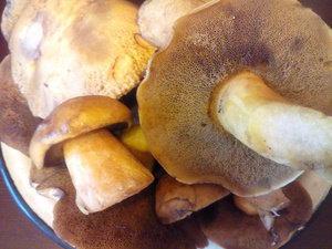 причем этот вид крепенький такой)Моховики! Они в этом году странные - ножка почти не синеет, а вот начинаешь шляпку резать - синий цвет появляется. Проверьте на шляпке)))Проверила, вы правы :)))