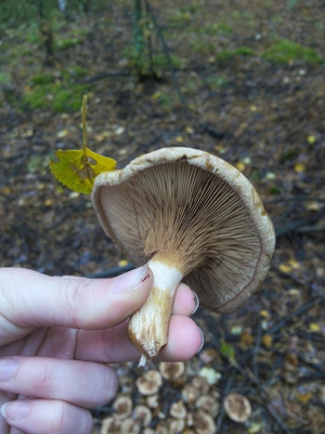 Целый таз типо опят....такие славные поганочки, ни на одной ножке нет колечка, даже на маленьких намека на отделяющиеся юбочку. Переубедить их не смогла, они мне сказали что прочитали в интернете, что это поганки с юбочкой, а опята без. Ездили собирать опята первый раз, сказали что в интернете АЖ 15 страниц про них вычитали.Осенние опята мне кажется сложно спутать когда ты их сто раз собирал, я пару раз сомневалась когда встречала чешуйчатку, но потом узнала что это такое.