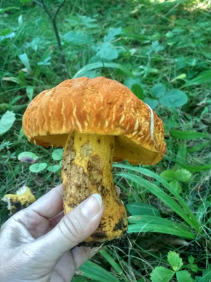 Всем добрый вечер! Была в отпуске на Дальнем Востоке, там в лесу нашла вот такие красочные грибы) По поводу сыроежки вопросов нет, а вот кто это такой рыжий, похожий на боровик?..