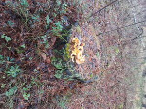 Ну и конечно проверил свои грибные места, как без этого) Конечно иллюзий на этот счёт не было, всё таки 8 ноября. Попадались сухие грузди, но уже покоричневевшие и размокшие после заморозков. Чего не ожидал увидеть, это лисички, попались несколько штук. В итоге пригодных для еды один сухой груздь, один чёрный и одна лисичка, вот такой улов.