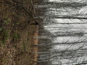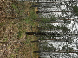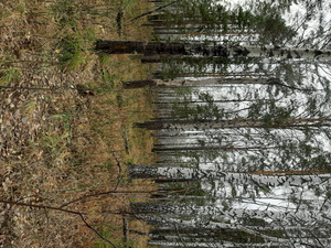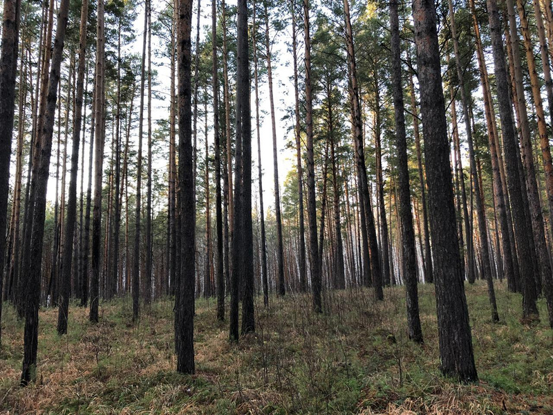 сообщу, что основной целью поездки был сбор коры осины. Поэтому выбор пал не на сам бор, а на его березово-осиновые подступы, обильно заваленные листвой. Ещё и свежеповаленное дерево нужно было найти: с живых и прямостоящих кожу сдирать не хочется.