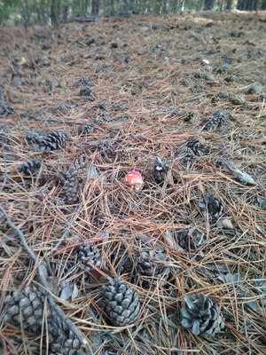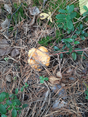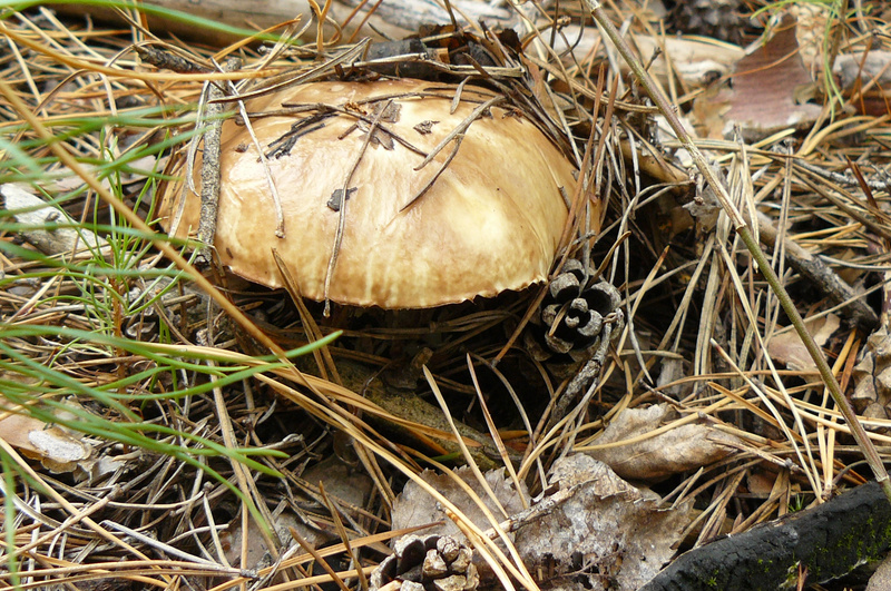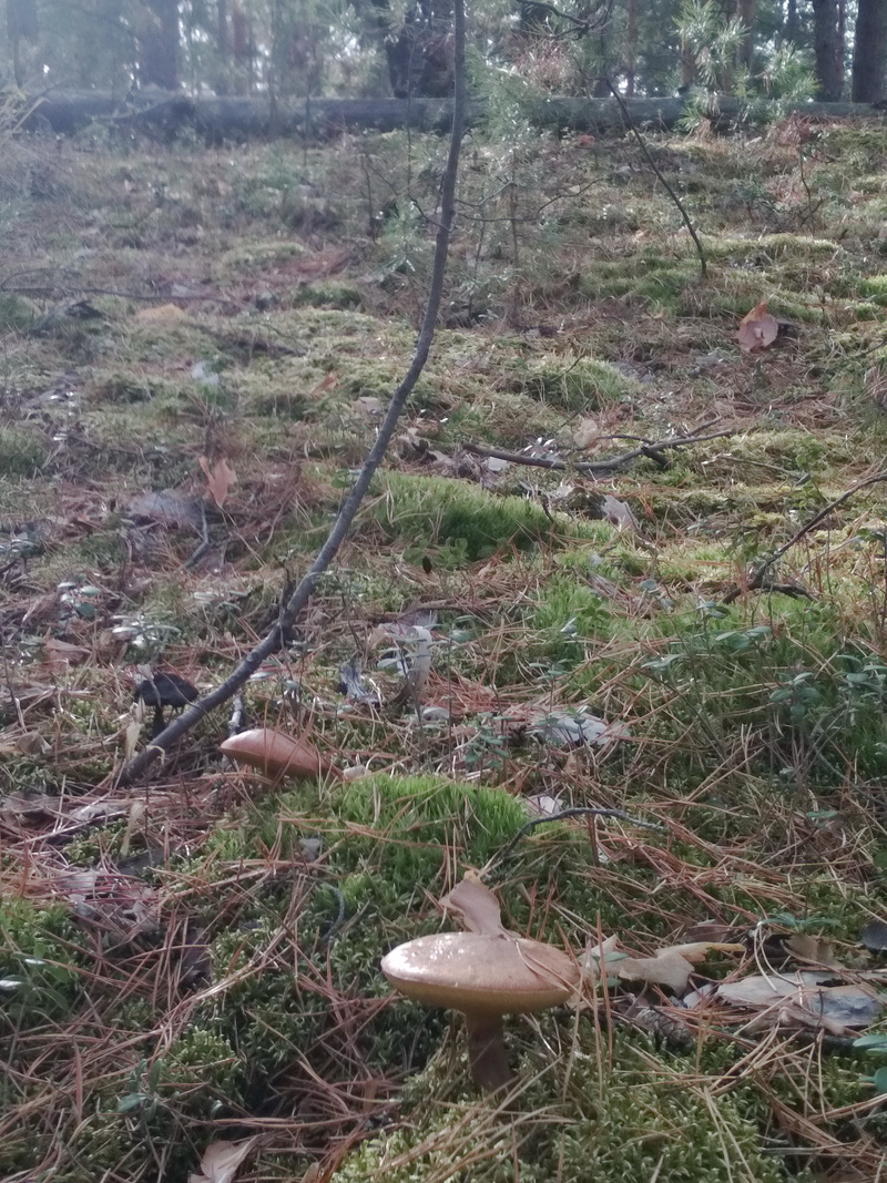 Нашлись несколько песчаных маслят, пара пурпурных мокрух, шампиньон, лисичка, несколько серых рядовок...