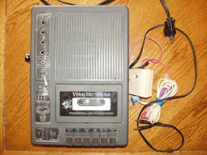 Есть мож интерес к такой технике. ...Проф.диктофон Viking International, времен 92-95 годов и стоил 200-300 дол. , 110 в, производство штаты, питание от 6 батареек бочек. Работает ..через раз и только от батарейного питания признаки жизни подает. От розетки никак ( кто его пыжился и в 220в сунул по ходу дела). Есть штуковина для тел.линии. В общем любителям поковыряться и пополнить музей анахронизмов поле для творчества. ...предложение в наших ден.знаках в личку.