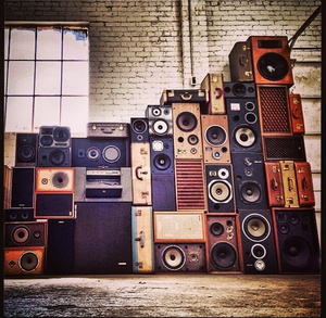 Подскажите где можно взять НЕрабочие старые колонки, аудиоаппаратуру и тп.? Главное-презентабельный внешний вид. Нужно собрать инсталляцию такого плана как на картинке.